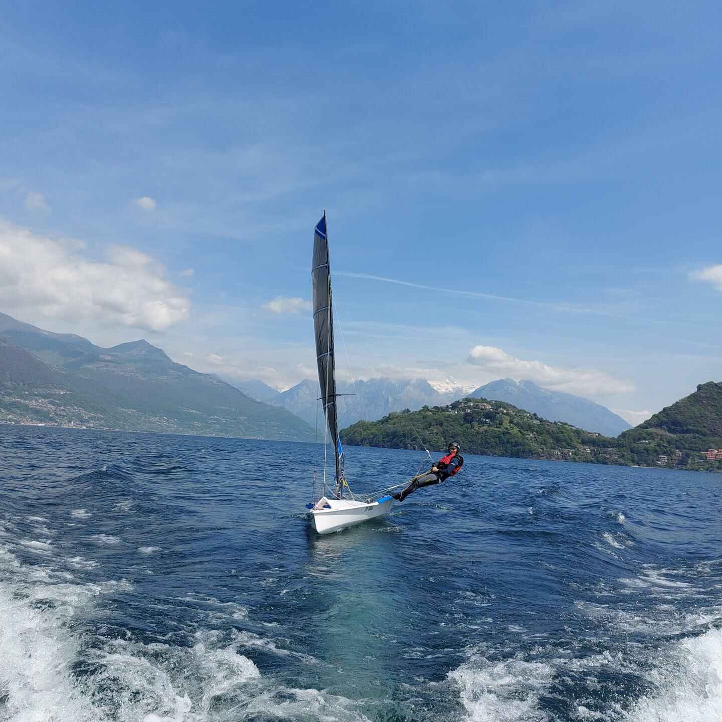 Dass man Musto Skiff segeln nicht wieder verlernt auch nach jahrelanger Pause immer noch Suchtpotenzial hat, erlebt Thomas Kübler, der ganz zufällig auch in Dongo war und so in den Genuss einer Spontanen Spritztour kam.